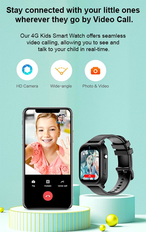 Stay connected anywhere: Our 4G Kids Smart Watch features uninterrupted video calling so you can see and talk to your child anytime.