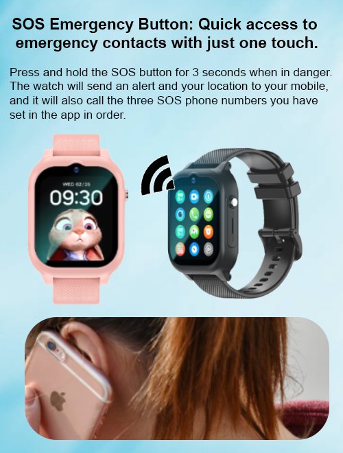 SOS emergency call feature provides comfort to both you and your child. In an emergency, press the SOS button to promptly alert parents or guardians.