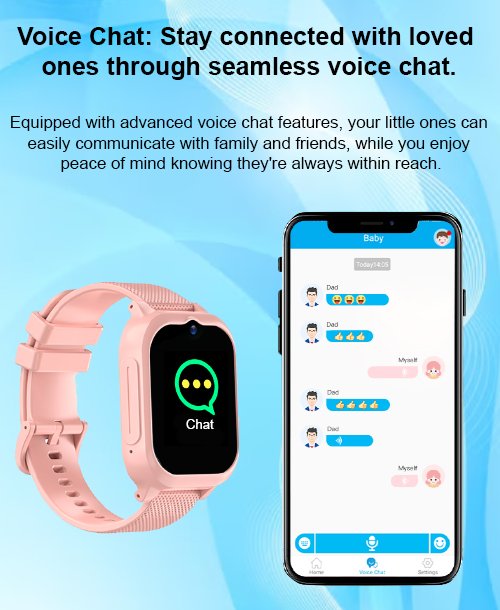 voice chat functionality: This smartwatch has a voice chat feature that makes it super easy for kids to talk to their friends and family. Parents can also see who their kids are talking to, so they can feel safe and secure.