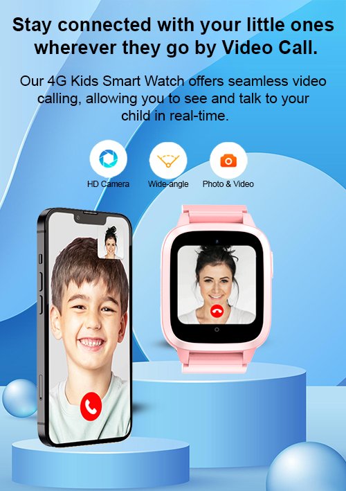 Stay connected anywhere: Our 4G Kids Smart Watch features uninterrupted video calling so you can see and talk to your child anytime.