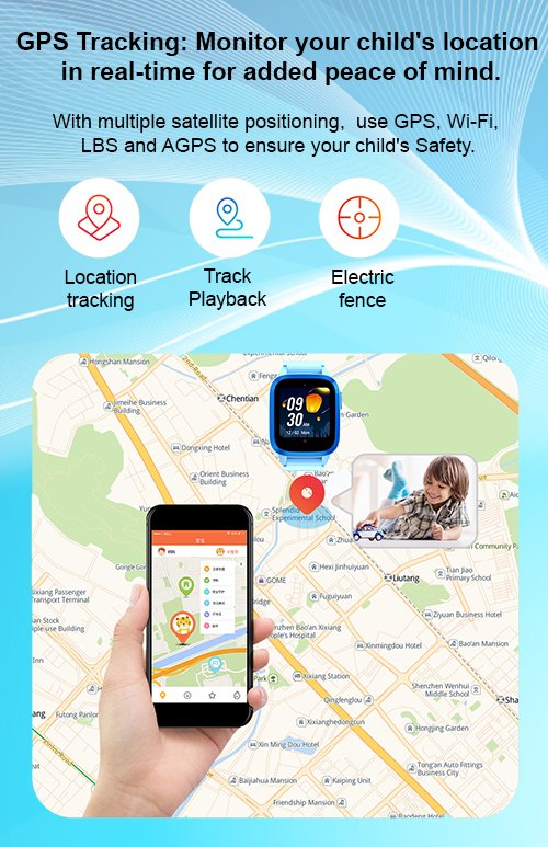 GPS Tracking: Stay connected and keep your child safe with our advanced 4G Kids GPS Smart Watch. With state-of-the-art GPS tracking, you can:
