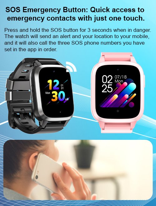 SOS emergency; call feature, which gives you and your child peace of mind. Press the SOS button to quickly notify parents or guardians in an emergency.