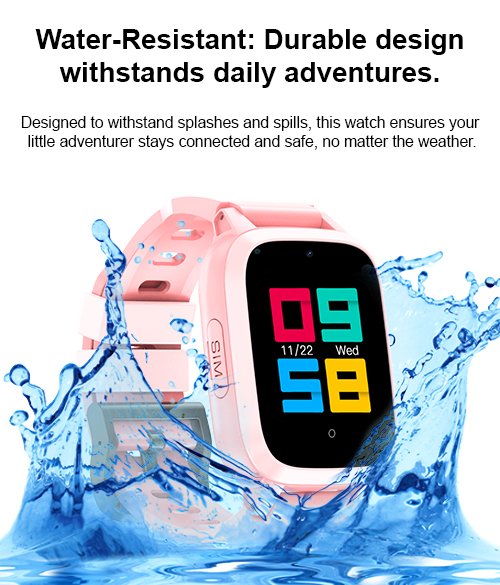 Waterproof: Let kids explore freely with our waterproof 4G smartwatch—stay connected, safe, and adventure-ready in any weather.