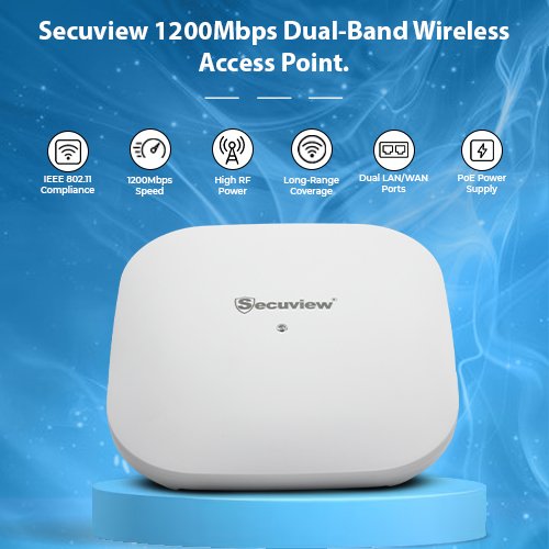 Enhance your network with the Secuview 1200Mbps Dual-Band Wireless Access Point. Enjoy fast, stable Wi-Fi connectivity with wide coverage, ideal for homes, offices, and commercial environments.