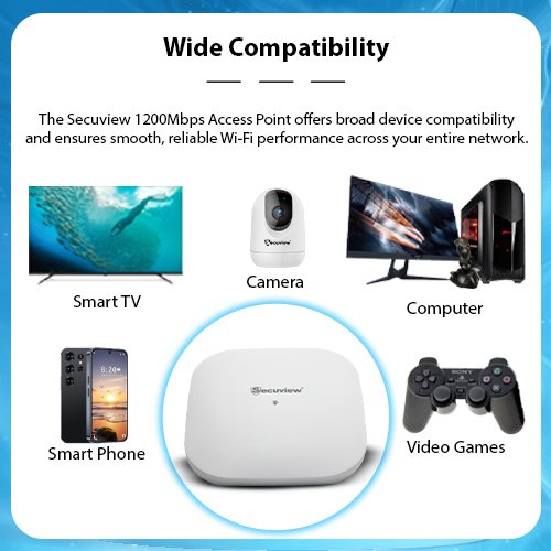 Wide Compatibility: The Secuview 1200Mbps Access Point offers broad device compatibility and ensures smooth, reliable Wi-Fi performance across your entire network.