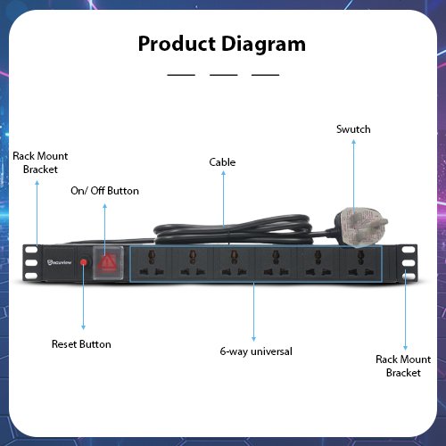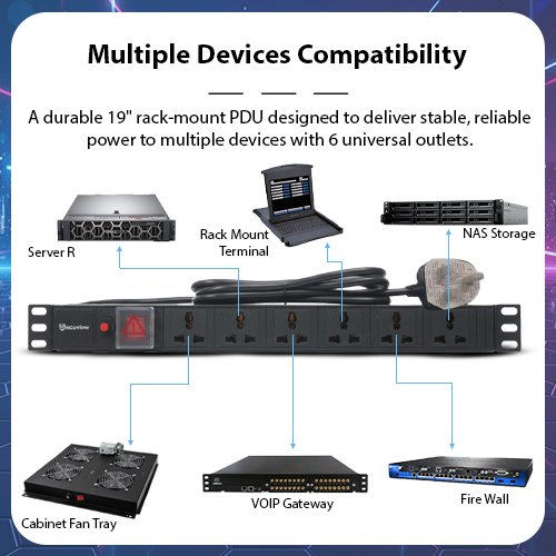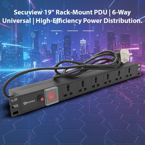 Secuview 19 Inches PDU | 6-Way Universal | High-Efficiency Power Distribution.