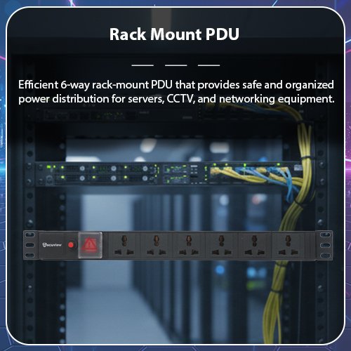 Rack Mount PDU:Â Efficient 6-way rack-mount PDU that provides safe and organized power distribution for servers, CCTV, and networking equipment.