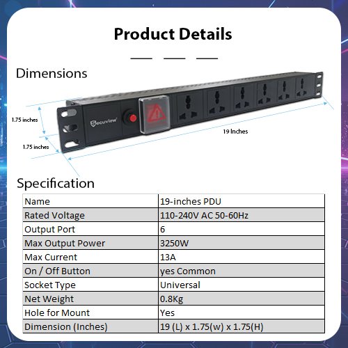 This item: Secuview 19 Inches PDU | 6-Way Universal | High-Efficiency Power Distribution.