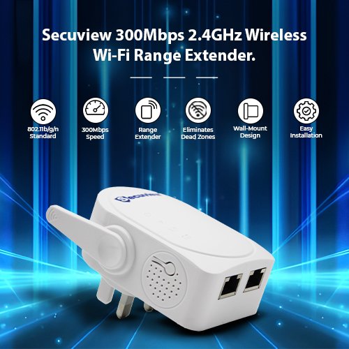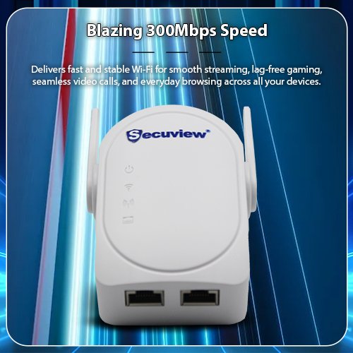 Extend your Wi-Fi coverage with the Secuview 300Mbps 2.4GHz Range Extender — stable, reliable, and easy to set up for home or office use.