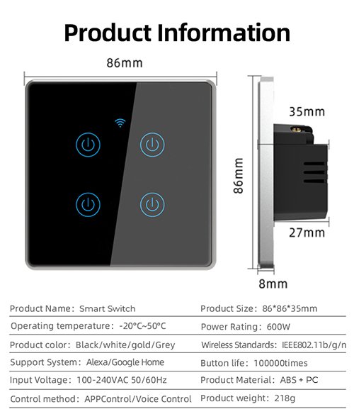 - Compatibility: Our smart switch is compatible with the Tuya smart home ecosystem.