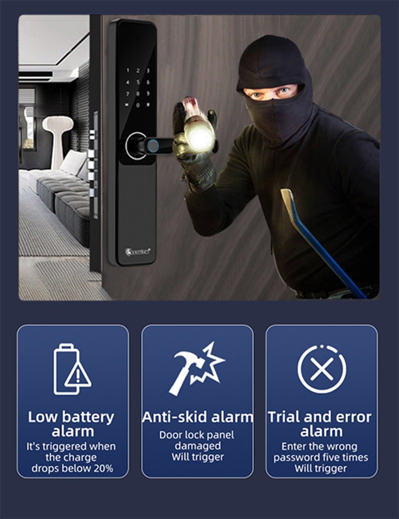 6-8 months of long-lasting battery life to meet your needs: Don’t panic when there is no power, the door can still be opened 50-100 times after the battery reminder.