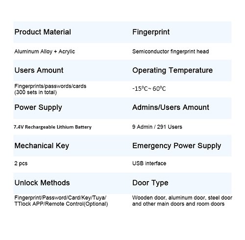 Unlock Methods: Mobile App, password, fingerprint, card, key and Temporary Password.