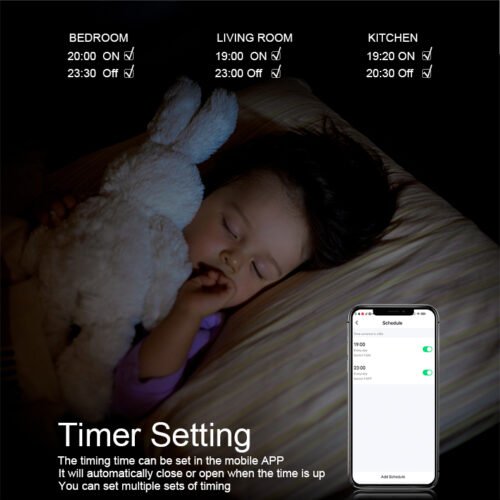 Scheduling: Set timers and schedules to automate lights and devices, ensuring energy efficiency and convenience.