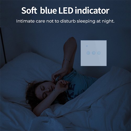 Soft blue LED indicator: Intimate care not to disturb sleeping at night.
