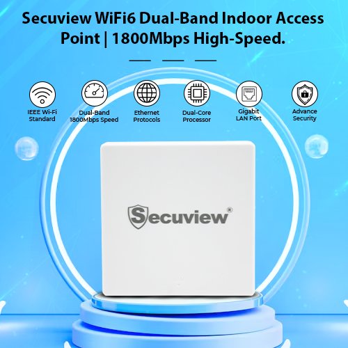 Experience ultra-fast, stable Wi-Fi with the Secuview WiFi6 Dual-Band 1800Mbps Access Point — perfect for seamless indoor connectivity.