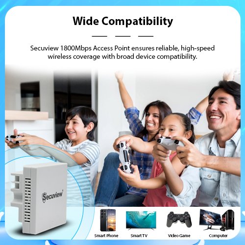 Wide Compatibility: Secuview 1800Mbps Access Point ensures reliable, high-speed wireless coverage with broad device compatibility.