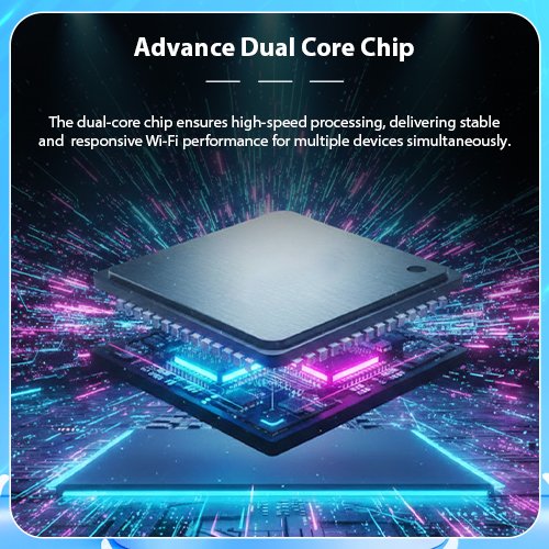 Advance Dual Core Chip: The dual-core chip ensures high-speed processing, delivering stable and responsive Wi-Fi performance for multiple devices simultaneously.