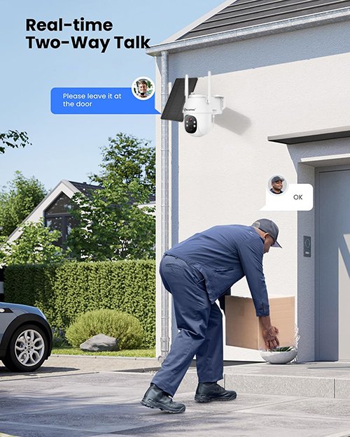 Two-Way Audio Communication: Engage with visitors or intruders directly through the camera’s built-in microphone and speaker. This feature enhances security by allowing you to communicate without being physically present.